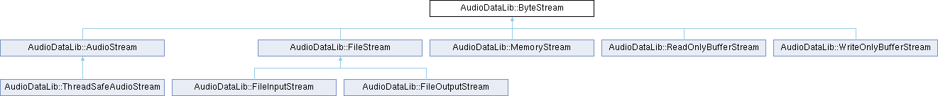 Implemented in AudioDataLib::FileInputStream, AudioDataLib::FileOutputStream, AudioDataLib::ReadOnlyBufferStream, AudioDataLib::WriteOnlyBufferStream, AudioDataLib::AudioStream, AudioDataLib::ThreadSafeAudioStream, and AudioDataLib::MemoryStream.