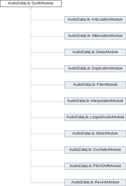 Implemented in AudioDataLib::ArticulationModule, AudioDataLib::AttenuationModule, AudioDataLib::DelayModule, AudioDataLib::DuplicationModule, AudioDataLib::FilterModule, AudioDataLib::InterpolationModule, AudioDataLib::LoopedAudioModule, AudioDataLib::MixerModule, AudioDataLib::OscillatorModule, AudioDataLib::PitchShiftModule, and AudioDataLib::ReverbModule.
